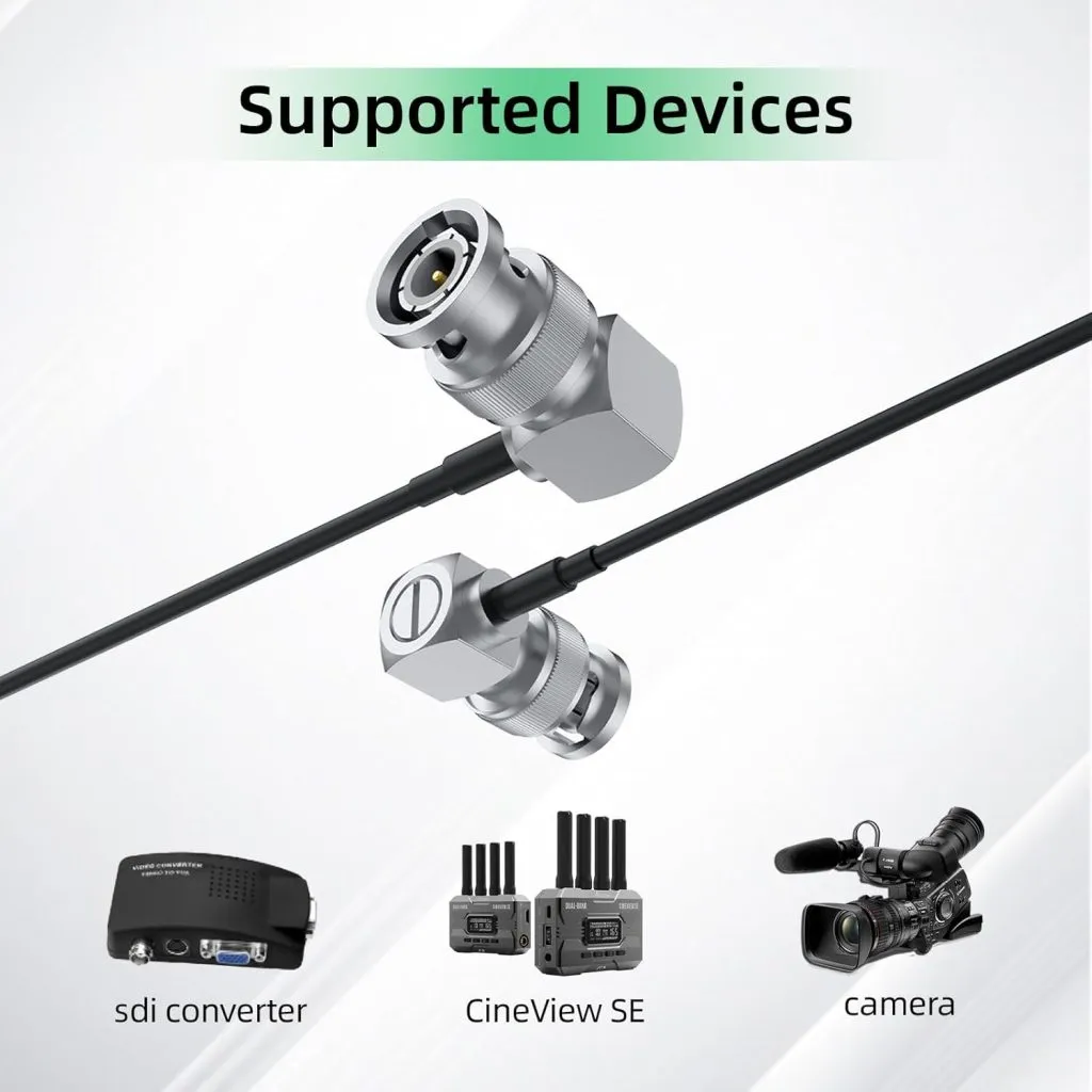 Accsoon SDI Cable, 80cm/2.6 ft Right Angle to Right Angle Video Transmission Cable, 75 Ohm Connector Cable Flexible for CineView SE/Quad/SeeMo Pro (Black)