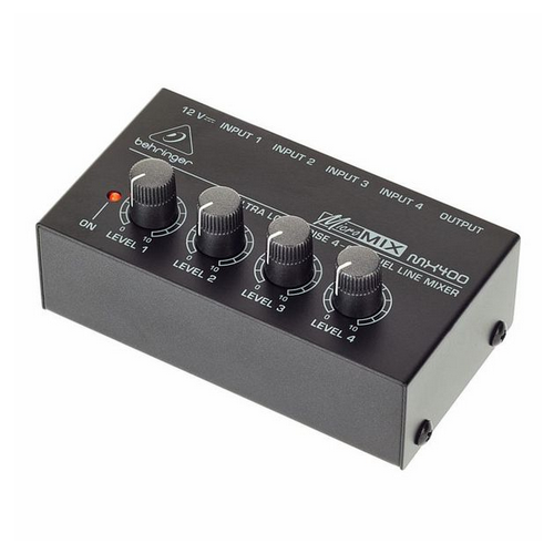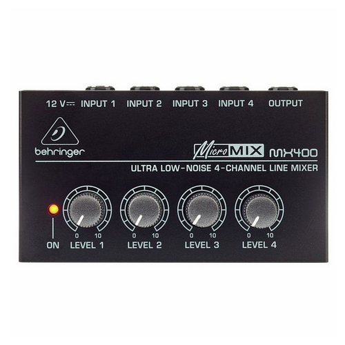 Despite its ultra-compact size, the MICROMIX MX400 4-channel line mixer is really big on features! Providing the highest sonic quality at all output levels vs. the competition, the MX400 features ultra low-noise 4580 operational amplifiers for outstanding audio performance – the same chips as the ones found in its much bigger mixers. Use the MX400 as a sub-mixer for your mixer: If you are running short on available channels on your “big” mixer and need to add 3 more keyboards to your mix, just connect them to the MX400, dial-in the mix – and connect MX400’s output to a single input on your main mixer. This way you have the opportunity to mix your keyboard with the MX400, without immediately occupying several valuable mixer channels.