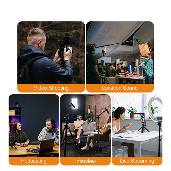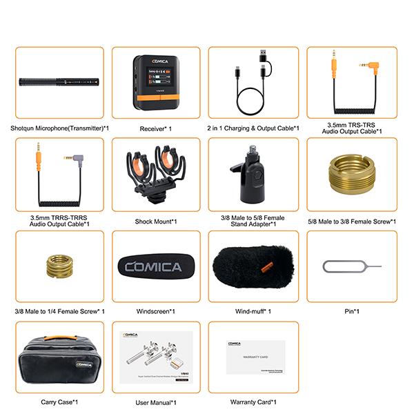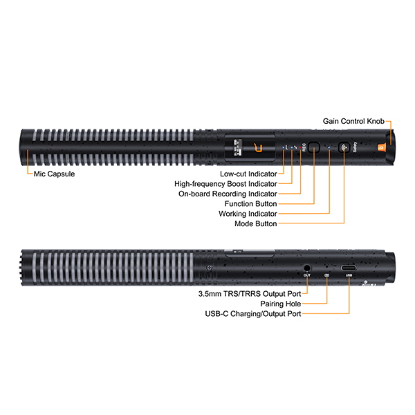 - Dual-channel Wireless Shotgun Mic, 14mm Gold-plating Capsule
