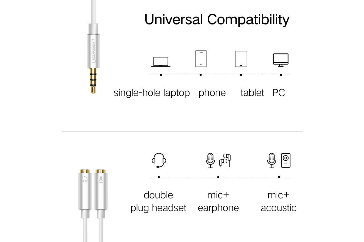 UGREEN 3.5mm male to 2 Female Audio Cable Aluminum Case (Black)